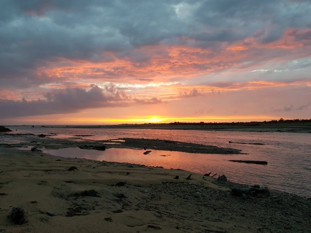 In freudiger Erwartung der morgigen Zieletappe (wir haben heute schon die letzten Kilometer des Weges damit verbracht, Einkaufslisten für den Besuch beim Supermarkt zu entwerfen), ein schnelles Romantikphoto bevor wir vor den Angriffen der sandflies fliehen,…