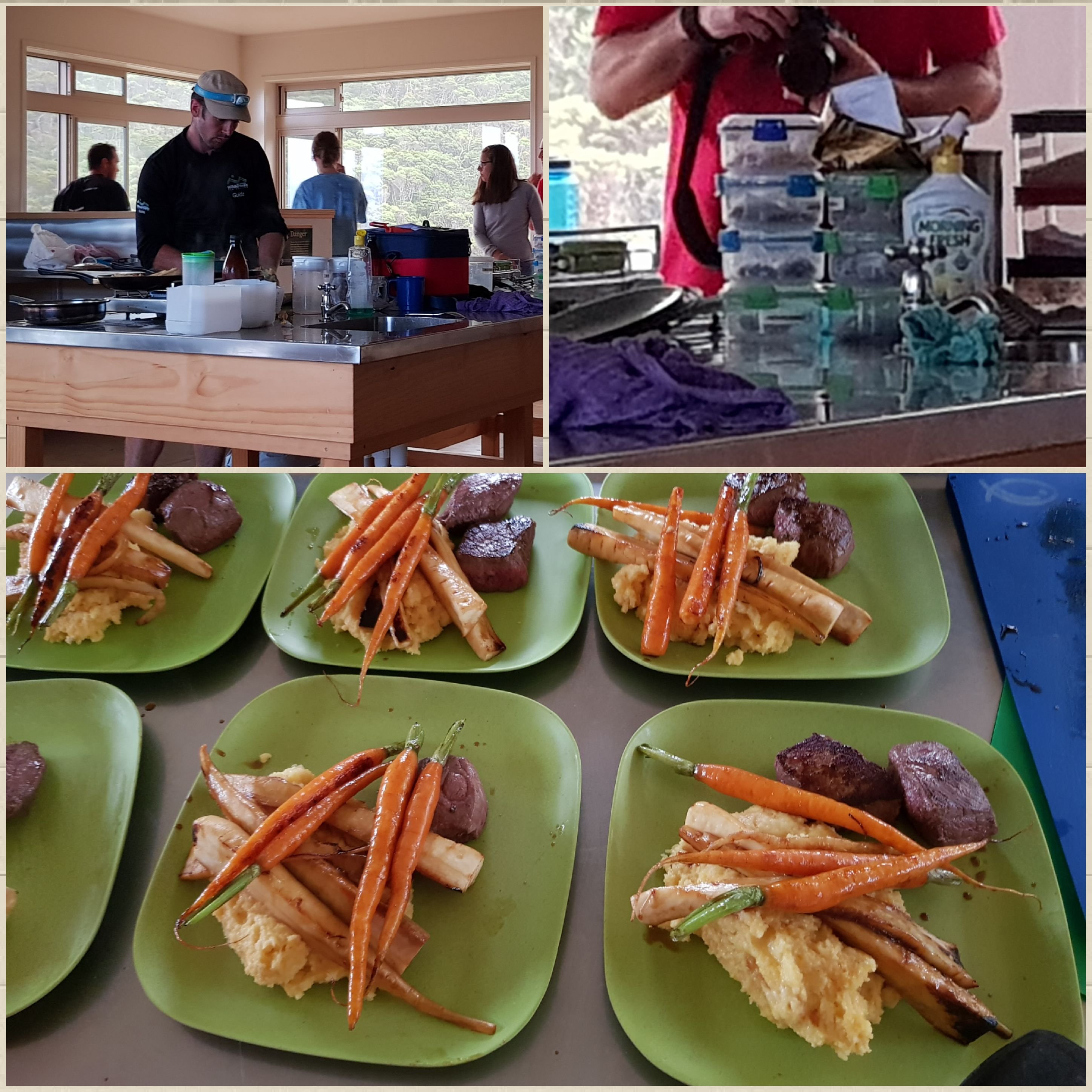 Die Hütte (und die nächste) teilen wir mit einer geführten ‚all-inklusive-gourmet‘ Wandertruppe. Sehr seltsam, wenn in dieser Wildnis, in die sonst jeder selbst keuchend sein Trockenfutter mitschleppt, dann für die ‚Gäste‘ mehrfach am Tag ein mehrgängiges Menü gekocht wird, die Küche komplett in Beschlag genommen und bereits morgens um fünf lautstark mit den Töpfen geklappert wird