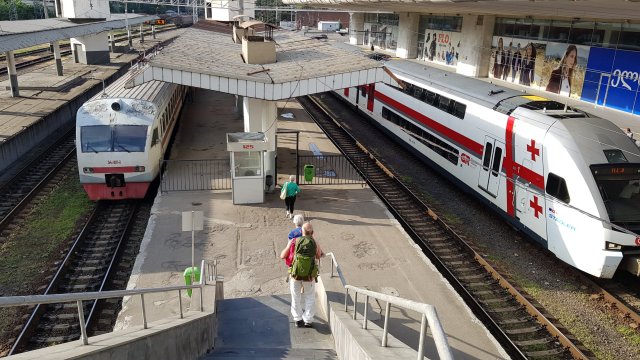 Für die erste Etappe ‚gen Berge wählen wir den Zug, Abfahrt auf Gleis 2 (von drei) auf Tiflis‘ Hauptbahnhof.