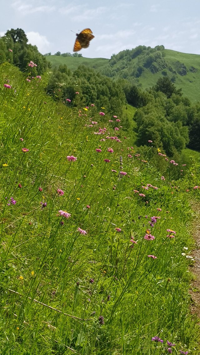 Und am letzten Tag nochmals entlang steiler Berghänge mit unglaublichen schönen Bergwiesen voller Blumen und Hunderten von Schmetterlingen