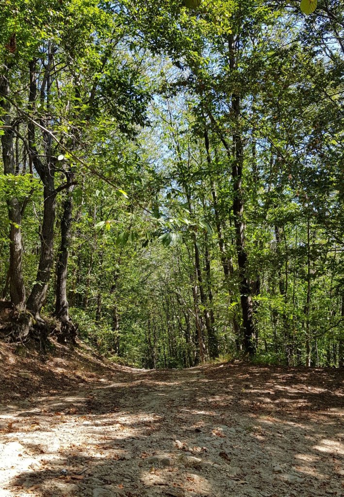 Vorbei an den Windmühlen, steil (was sonst!) bergauf durch naturbelassene Buchen und Steineichenwälder